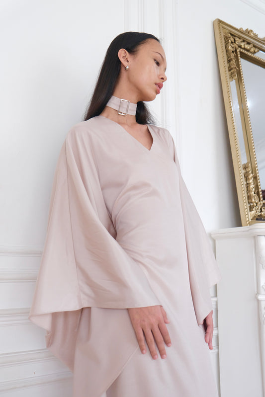 LILA Silk Neck-Belted Kaftan in Blush Pink