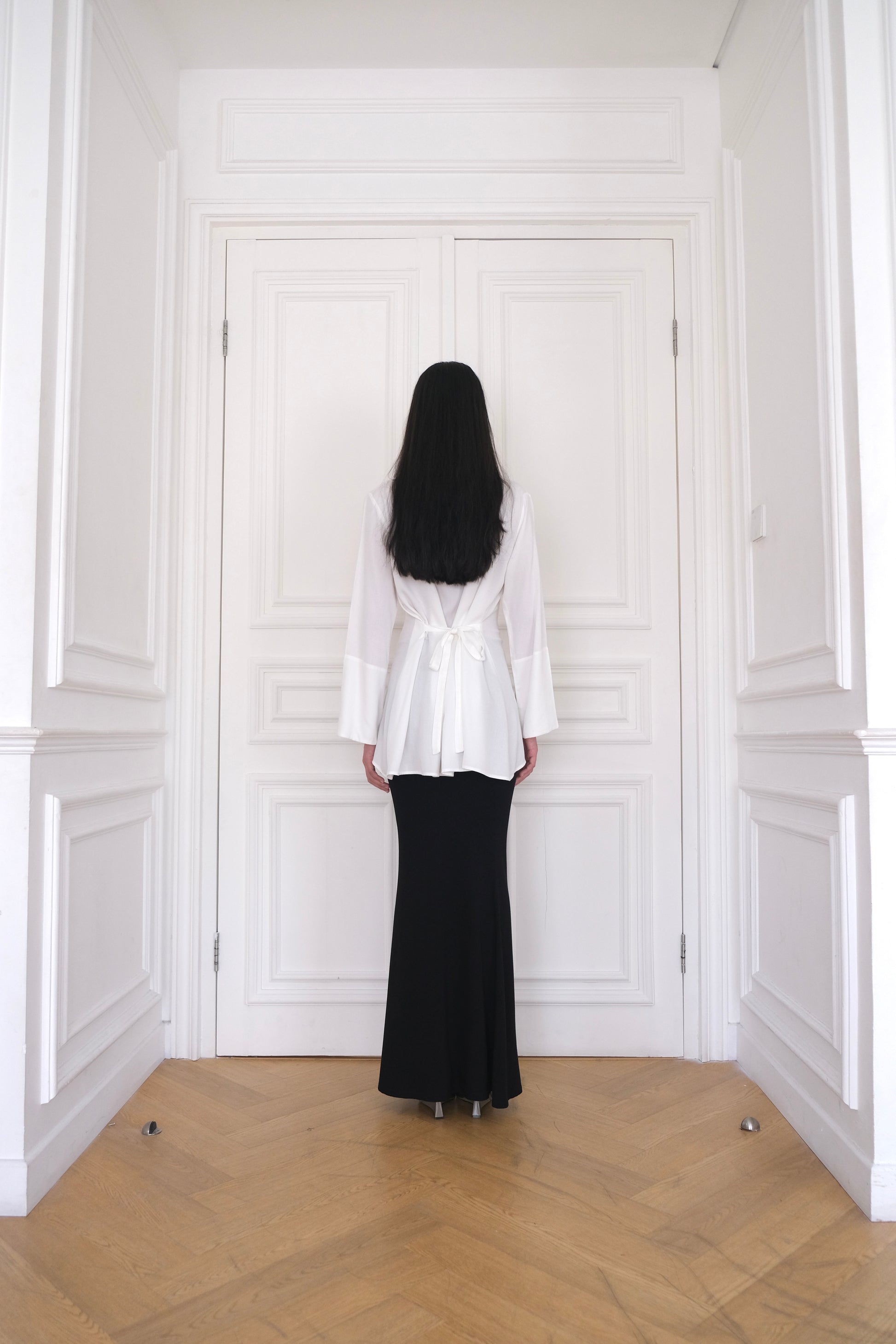 The adjustable ties at the back offer flexibility to create a defined silhouette or wear them loosely.