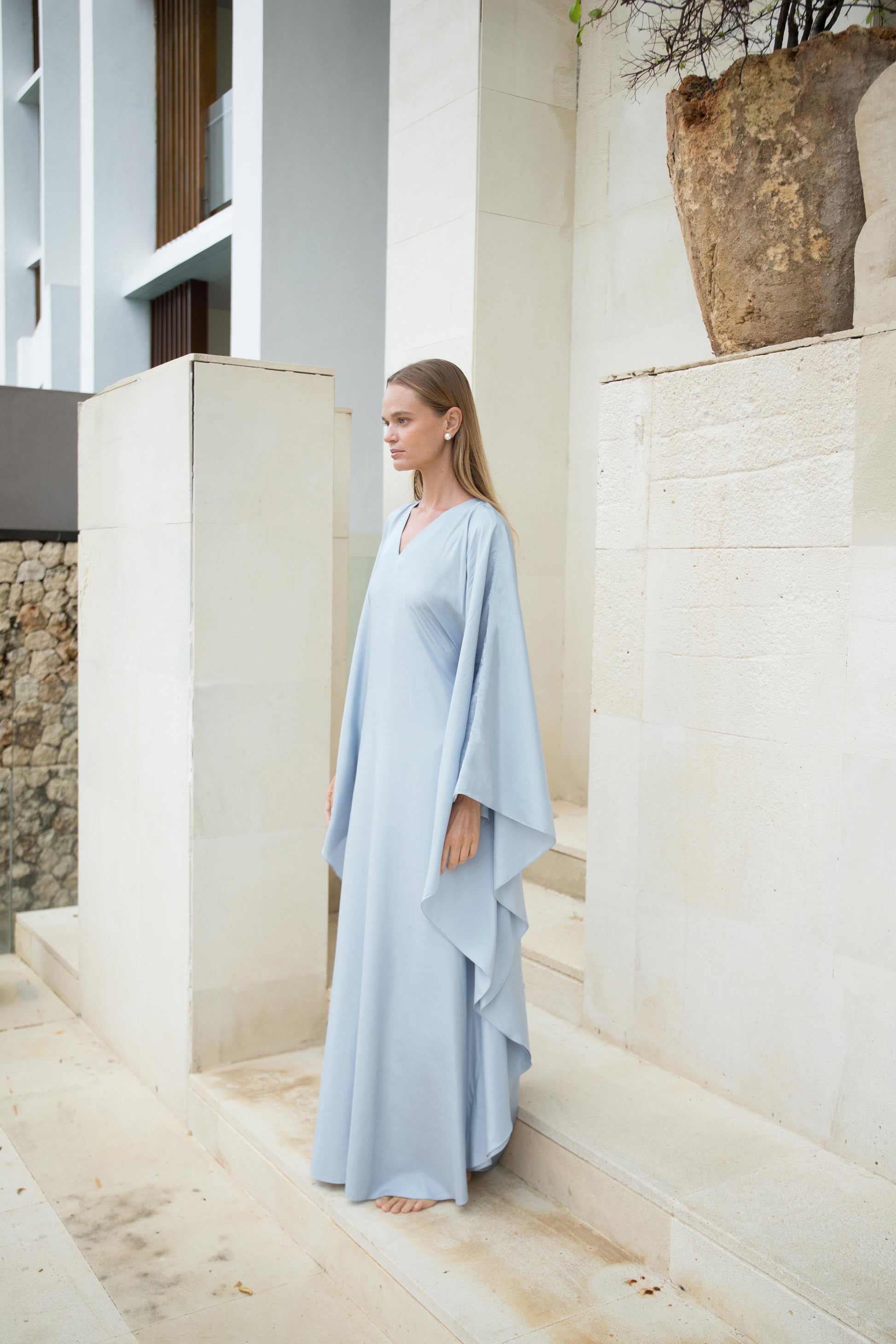 Silk Kaftan Dress in Azure V-neck | ships Oct 10-17